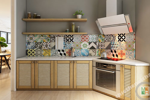 tủ bếp gỗ sồi , tủ bếp hiện đại