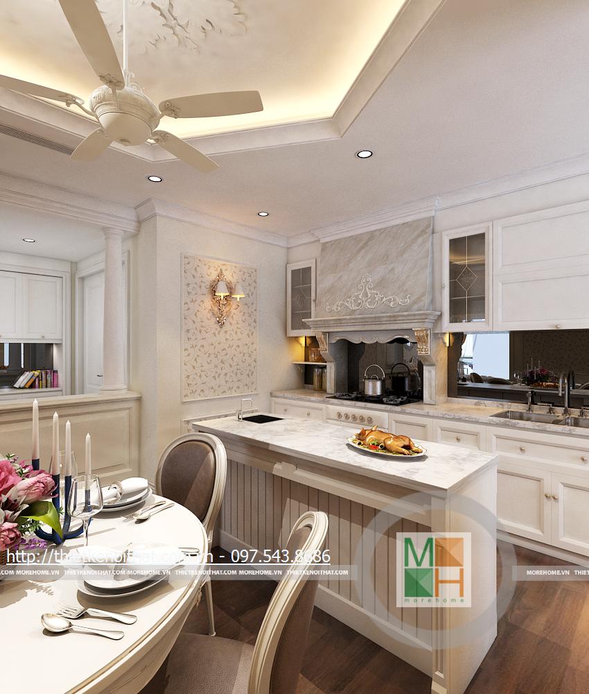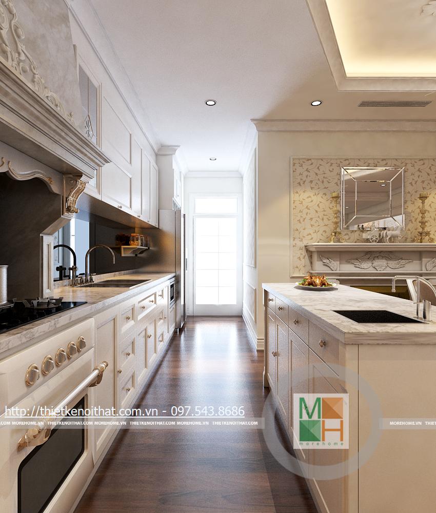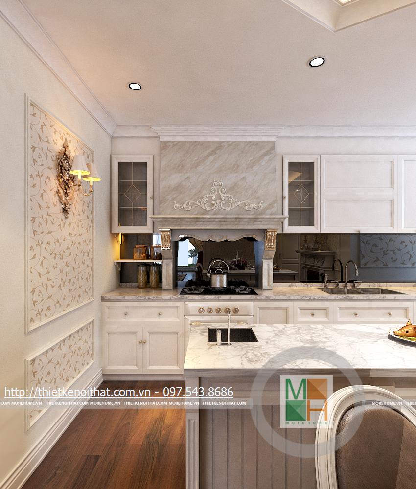 Tủ bếp óc chó tự nhiên tân cổ điển - óc chó cao cấp