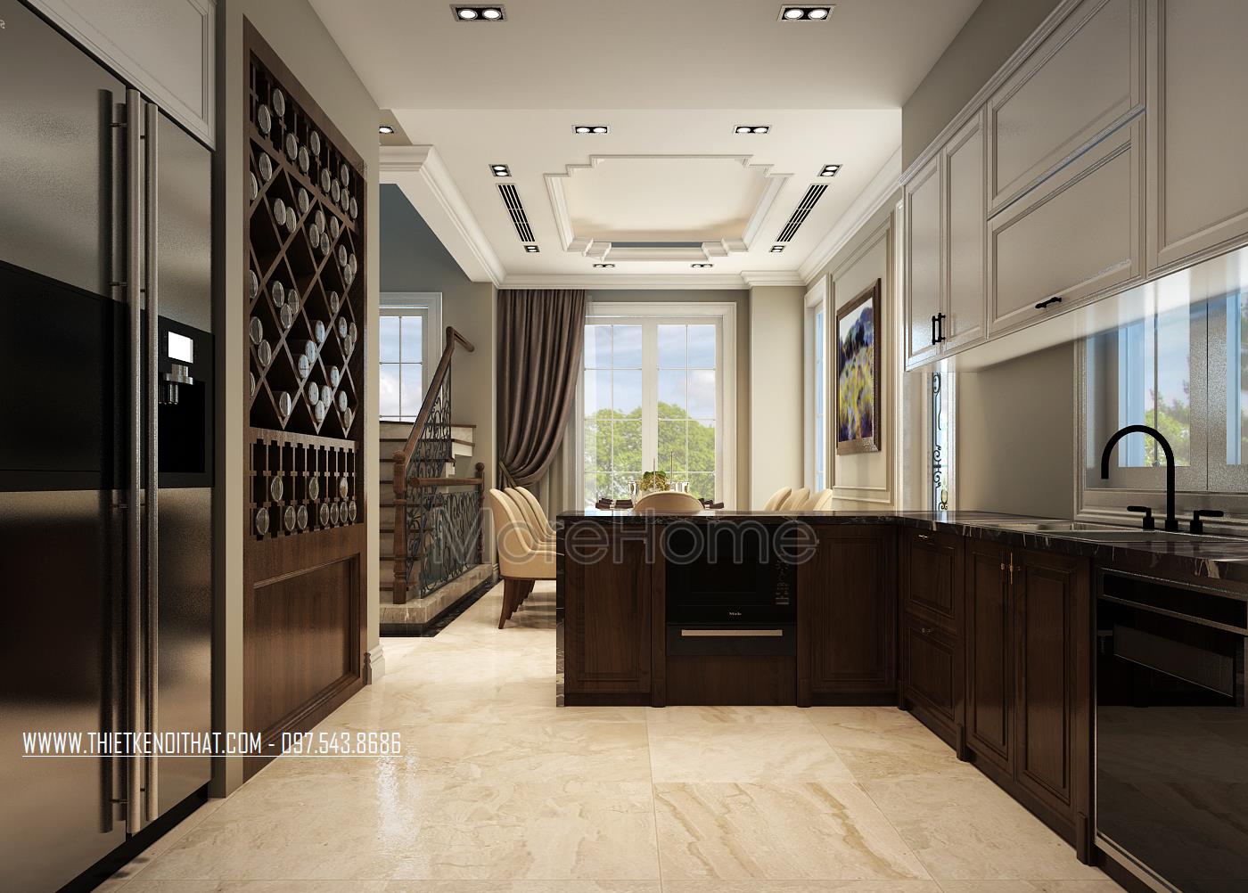 Thiết kế tủ bếp gỗ óc chó biệt thự song lập Vinhomes Riverside