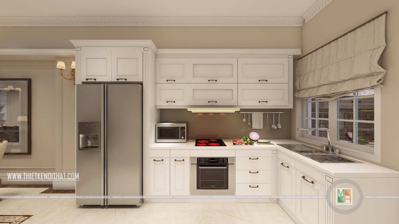 Tủ bếp gỗ óc chó tự nhiên tân cổ điển