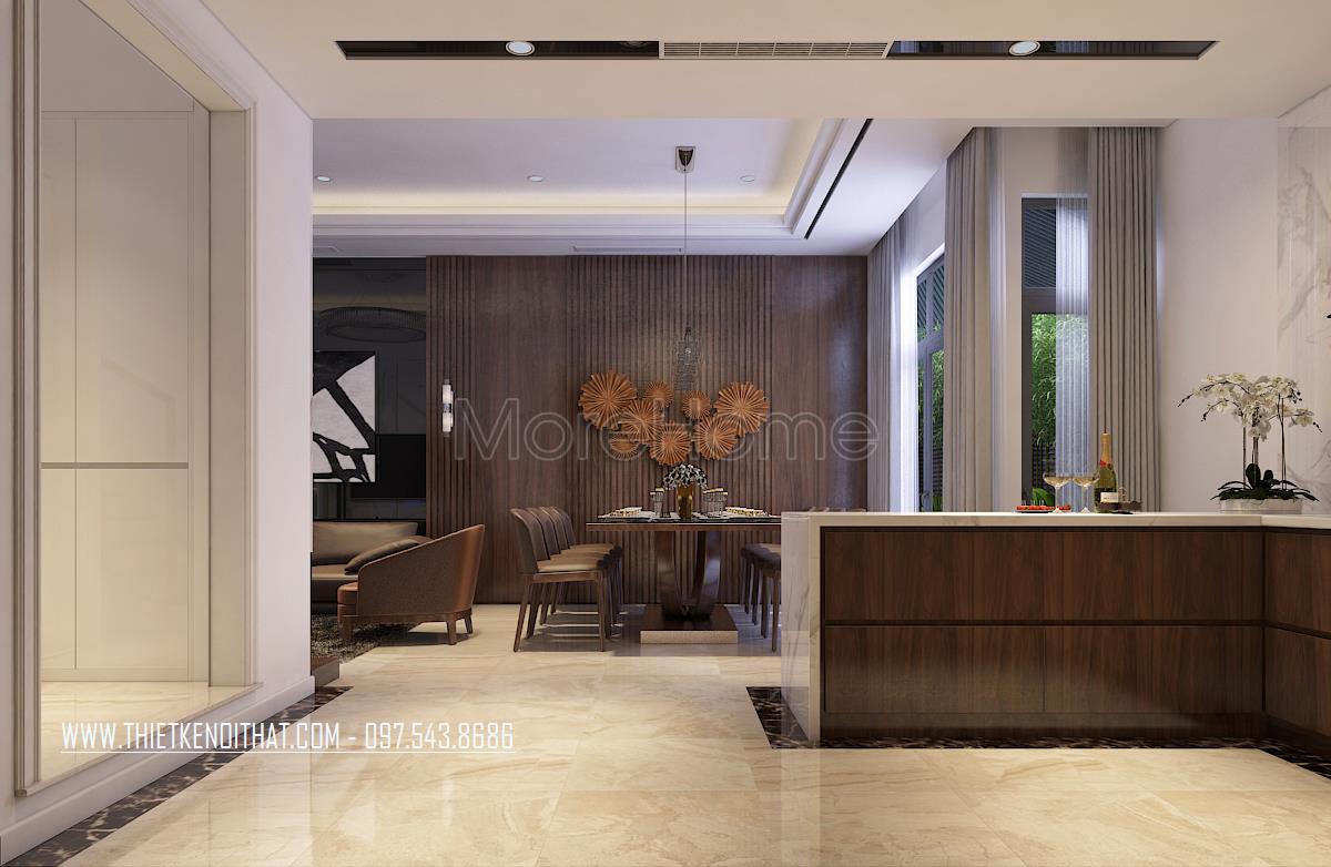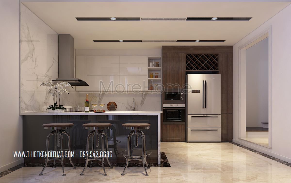 Tủ bếp gỗ óc chó tại nhà liền kề hiện đại mang một sắc thái nhẹ nhàng, sử dụng gỗ óc chó làm điểm nhấn giữa sự kết hợp của tủ bếp gỗ công nghiệp và đá hoa cương tự nhiên cao cấp. Morehome là đơn vị đầu ngành về thiết kế và sản xuất mẫu tủ bếp đẹp với nhiều phong cách và tiện nghi bất ngờ. Liên hệ ngay 0975438686 (Mr Chính) để được tư vấn.