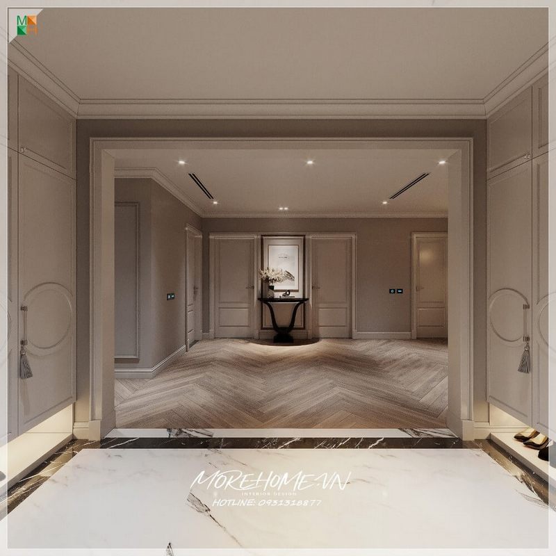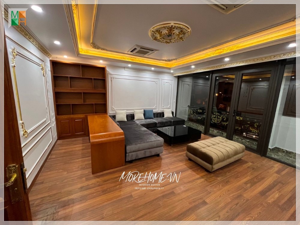 Phòng khách biệt thự tân cổ điển đã được hoàn thiện bởi công ty nội thất Morehome và hình ảnh thực tế của nó đã được chụp.